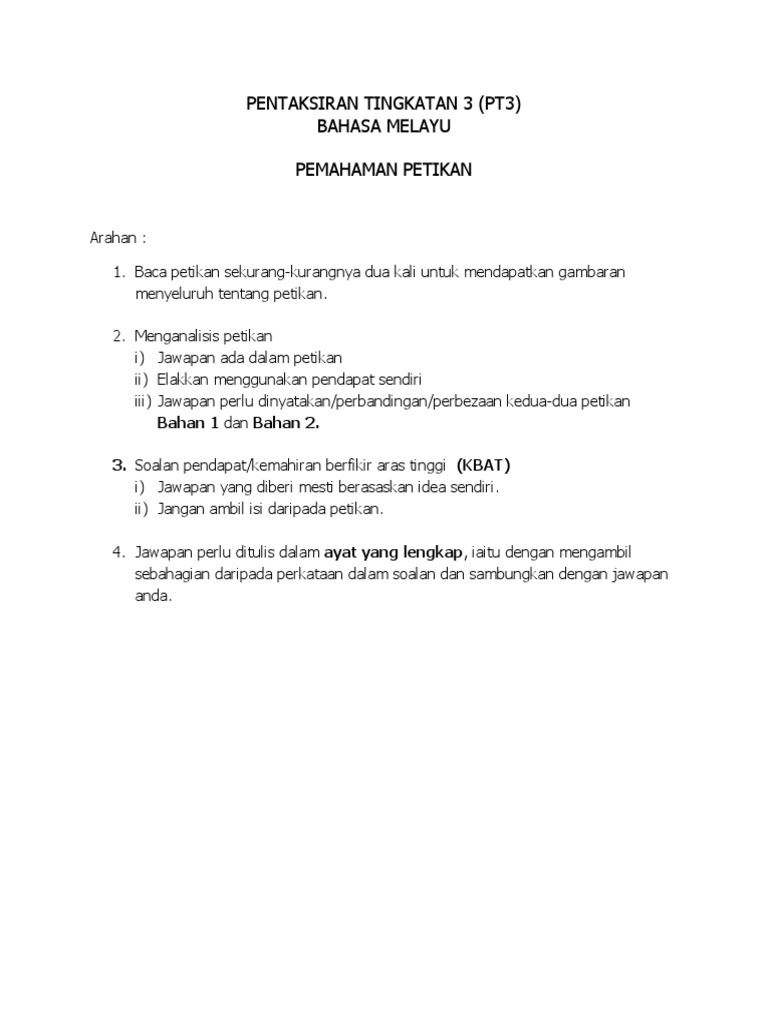 Ejercicio De Latihan Pemahaman Petikan Umum Kssm Spm